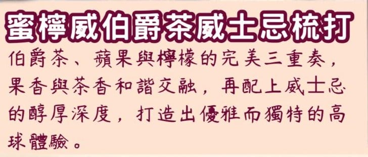 茶、伯爵茶。完美適合⼯作後放鬆、週末聚會或獨處時光。蜜